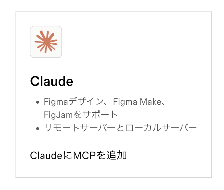 まずは Figma MCP を導入して、Claude が Figma にアクセスできるようにした。